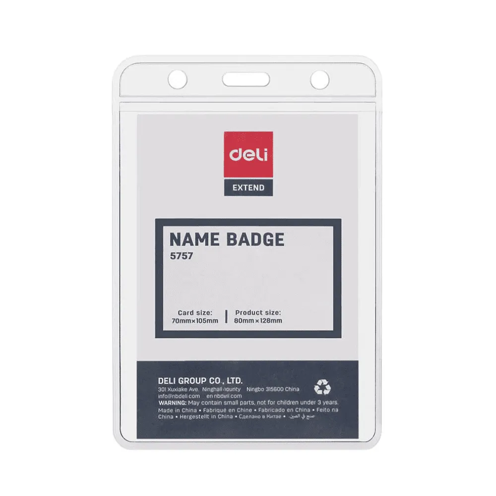 Бейдж вертикальный DELI, 80x128 мм, пластиковый