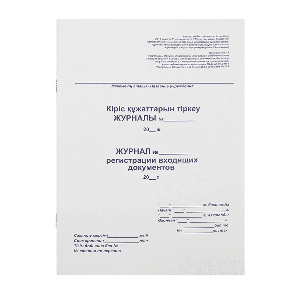 <p>Журнал регистрации входящих документов</p><p><br></p><p>Обложка изготовлена из картона белого цвета</p><p><br></p><p>Внутренний блок — офсетная бумага, 50 листов</p>