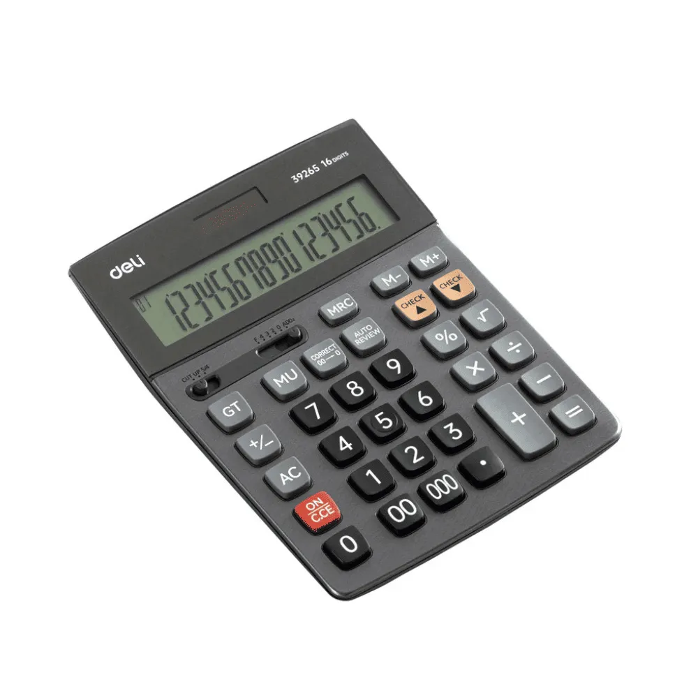 <p>Настольный калькулятор DELI «39265» предназначен для удобного выполнения расчетов в офисе, учебе и дома. Оснащенный 16-разрядным дисплеем, он позволяет работать с крупными числами и обеспечивает четкую читаемость результатов. Эргономичный корпус в сером цвете сочетает продуманный дизайн и удобное расположение клавиш, что делает использование комфортным при ежедневной работе. Прочный и надежный материал корпуса гарантирует долговечность устройства. Практичный и функциональный калькулятор DELI «39265» объединяет удобство, современный дизайн и надежность, оставаясь востребованным инструментом для профессиональных и повседневных расчетов.</p>