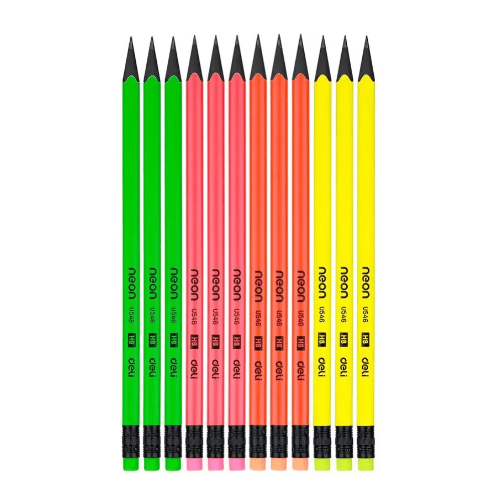 Карандаш DELI "EnoVation", НВ, трехгранный корпус, пластик, с ластиком, неоновые ассорти