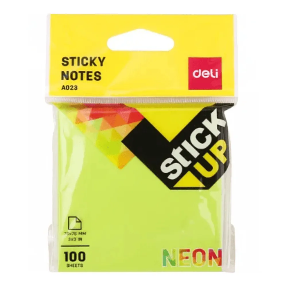 Клейкие листки DELI "Neon" 76х76 мм, неоново-зеленые, 100 листов