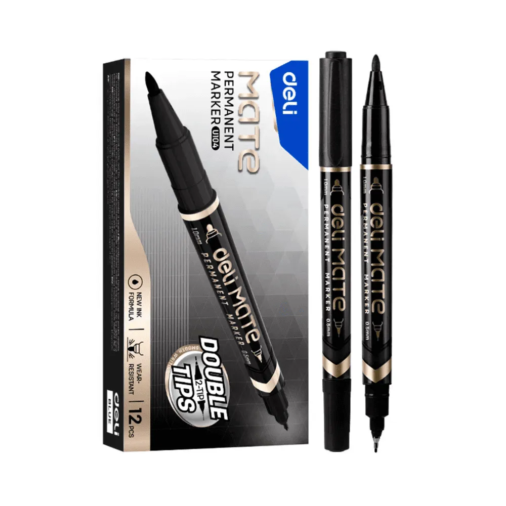 <p>Маркер для CD/DVD DELI "Mate" — это двухсторонний перманентный маркер с чёрными чернилами, специально разработанный для нанесения надписей на диски и гладкие поверхности. Один конец оснащён тонким наконечником 0,5 мм для аккуратных подписей, другой — средним 1,0 мм для более выразительных отметок. Чернила быстро сохнут, не размазываются и устойчивы к выцветанию.</p><p>Благодаря своей конструкции маркер обеспечивает точность и комфорт при работе, а универсальный чёрный цвет делает надписи чёткими и легко читаемыми. Подходит для маркировки CD, DVD, пластика, плёнки и других чувствительных носителей. Отличный выбор для офиса, архива или домашней медиатеки.</p>