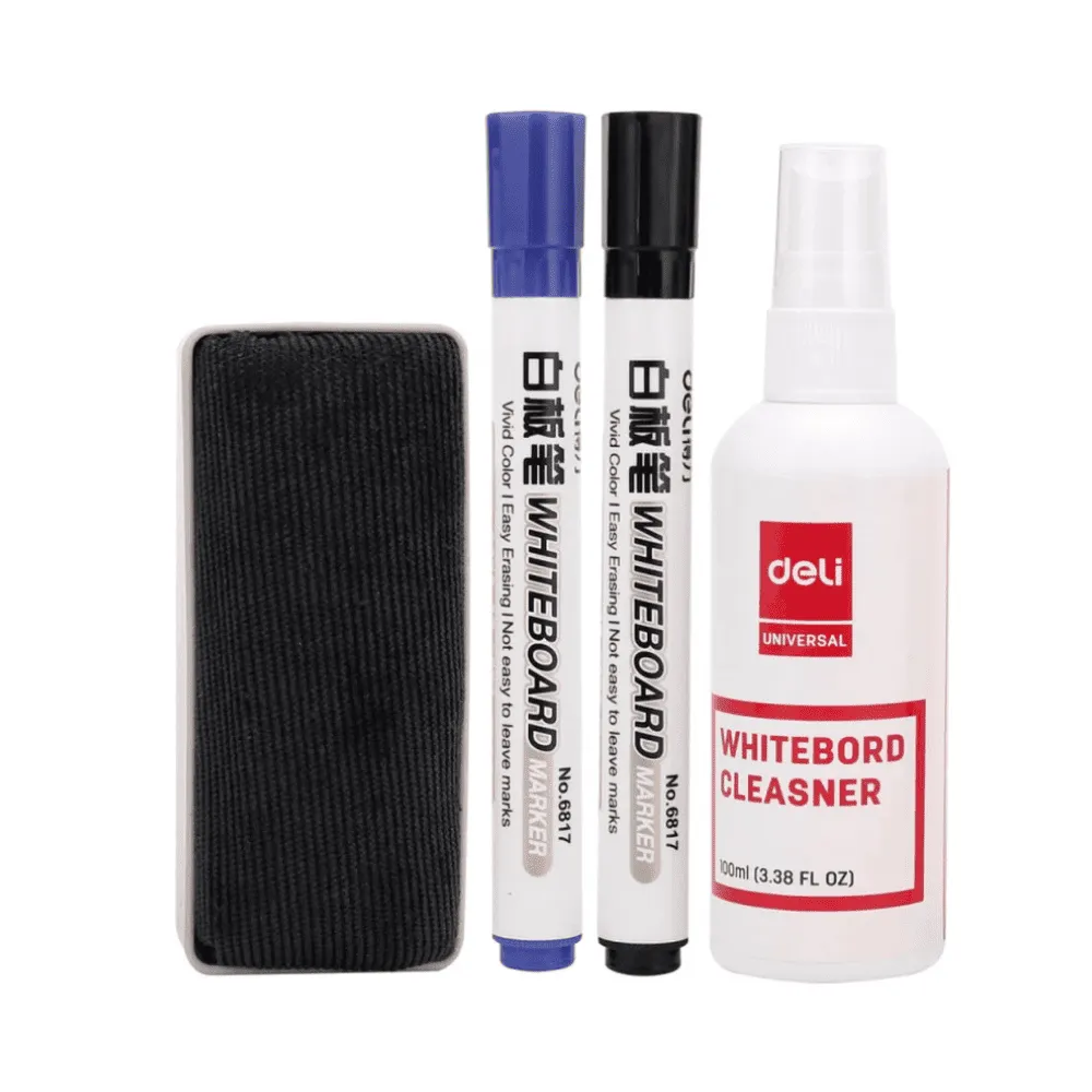 <p>Набор DELI для маркерной доски предназначен для удобной работы с белыми поверхностями и станет практичным решением для офиса, учебы или домашних занятий. Он включает всё необходимое для записи и ухода за доской, обеспечивая аккуратность и комфорт в использовании. В комплект входят два маркера для создания чётких и ярких линий, жидкость для очистки поверхности и губка, позволяющая быстро удалять надписи без следов. Такой набор делает работу с доской более удобной и эффективной, сохраняя её в чистоте и продлевая срок службы.</p>