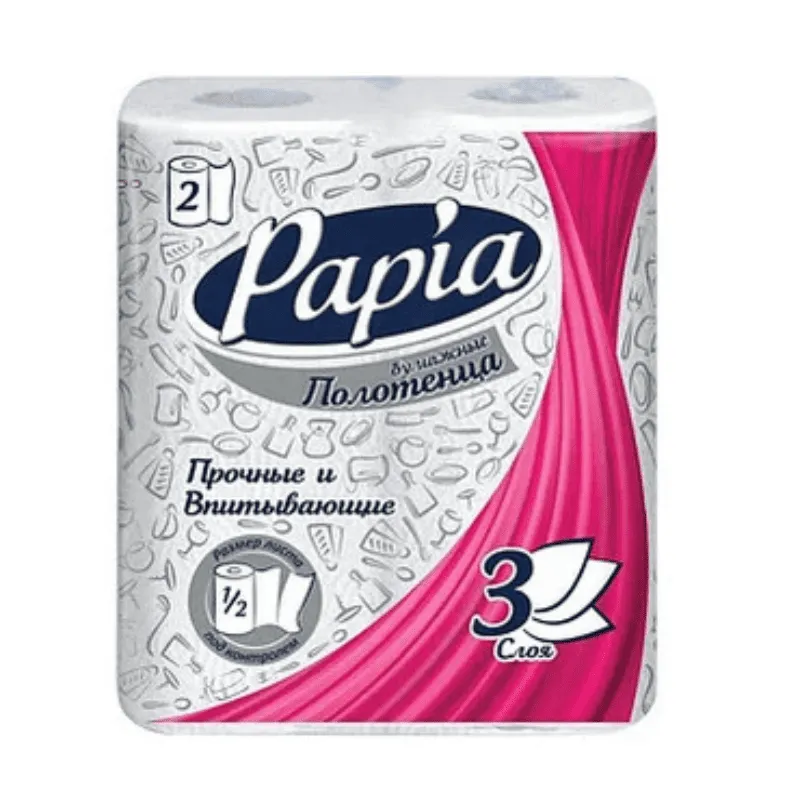 <p>Бумажные полотенца <strong>Papia</strong> — это сочетание премиального качества, мягкости и высокой впитываемости. Трёхслойная структура обеспечивает прочность при использовании, а длина рулона 12,5 метров позволяет использовать полотенца экономично и надолго.</p><p>Подходят для кухни, ванной, уборки и сервировки. Белый цвет и нежная текстура делают их универсальными для любых задач в быту или офисе.</p>
