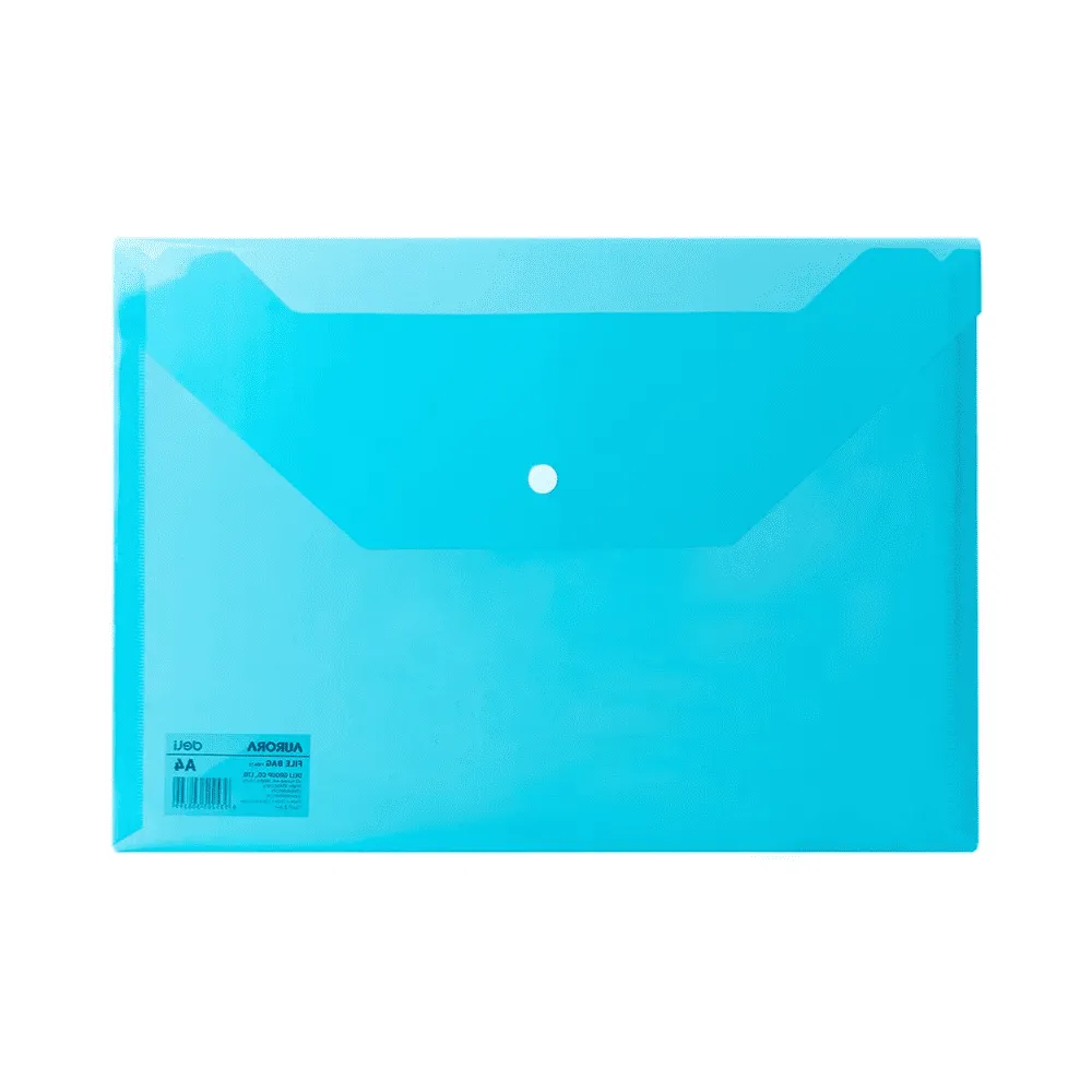 Папка-конверт на кнопке DELI "Aurora", А4, 0,12 мм, голубая