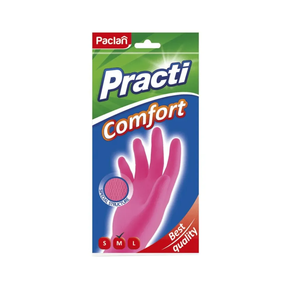 Перчатки резиновые Paclan "Practi.Comfort", р.М, розовые, пакет с европодвесом