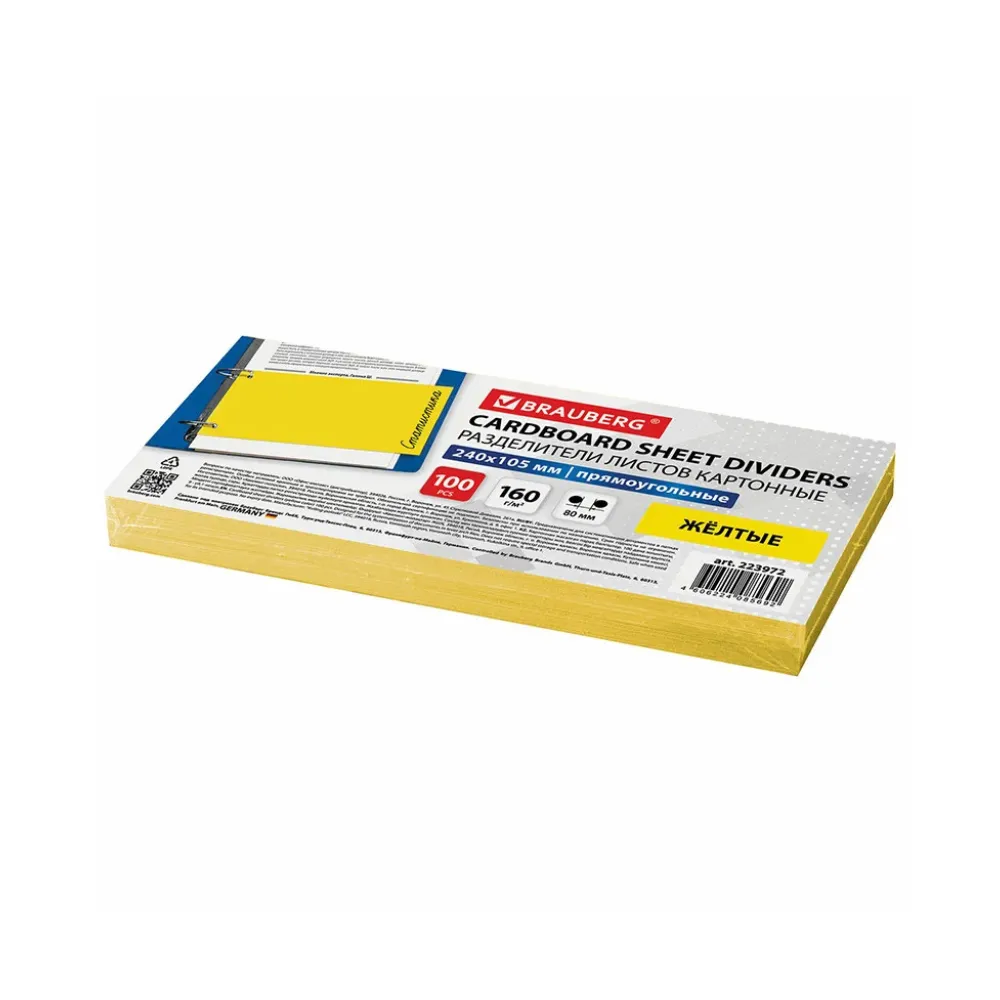 Разделитель картонный BRAUBERG, 100 листов 105х240 мм, 160 гр, желтый