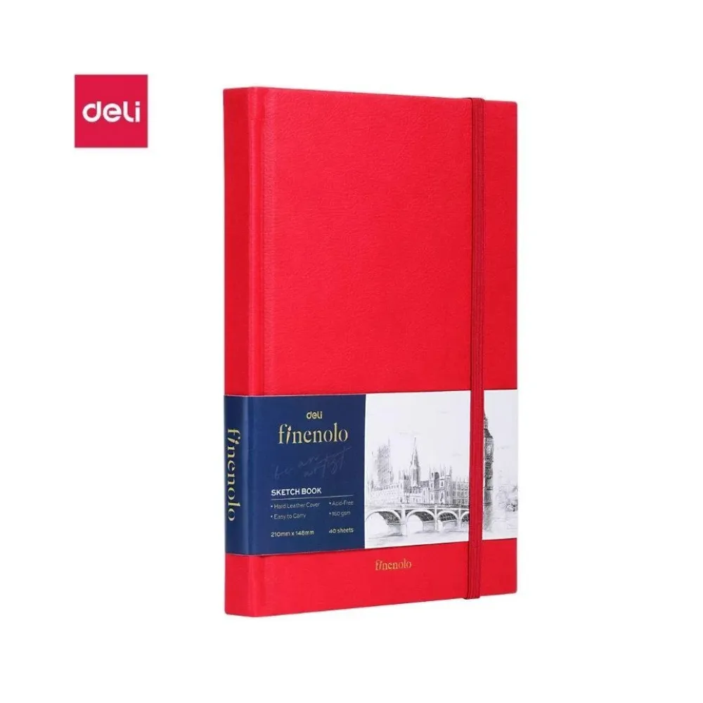 Скетчбук DELI "Finenolo ", А5, 40 л., 160 г/кв.м., красный