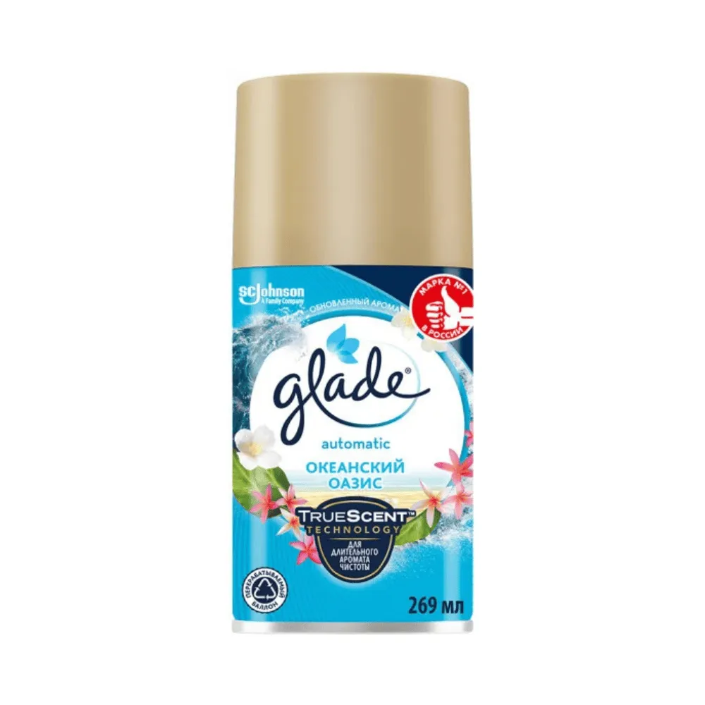 <p>Сменный баллон Glade «Океанский оазис» (269 мл) наполняет помещение свежестью морского бриза, создавая атмосферу чистоты и лёгкости. Средство эффективно нейтрализует неприятные запахи, даря ощущение свежести и комфорта в доме или офисе. Компактный объём 269 мл удобно использовать для продления работы автоматических освежителей воздуха. Glade «Океанский оазис» превращает каждый день в приятное и свежее пространство, обеспечивая долгий аромат и уют в помещении.</p>