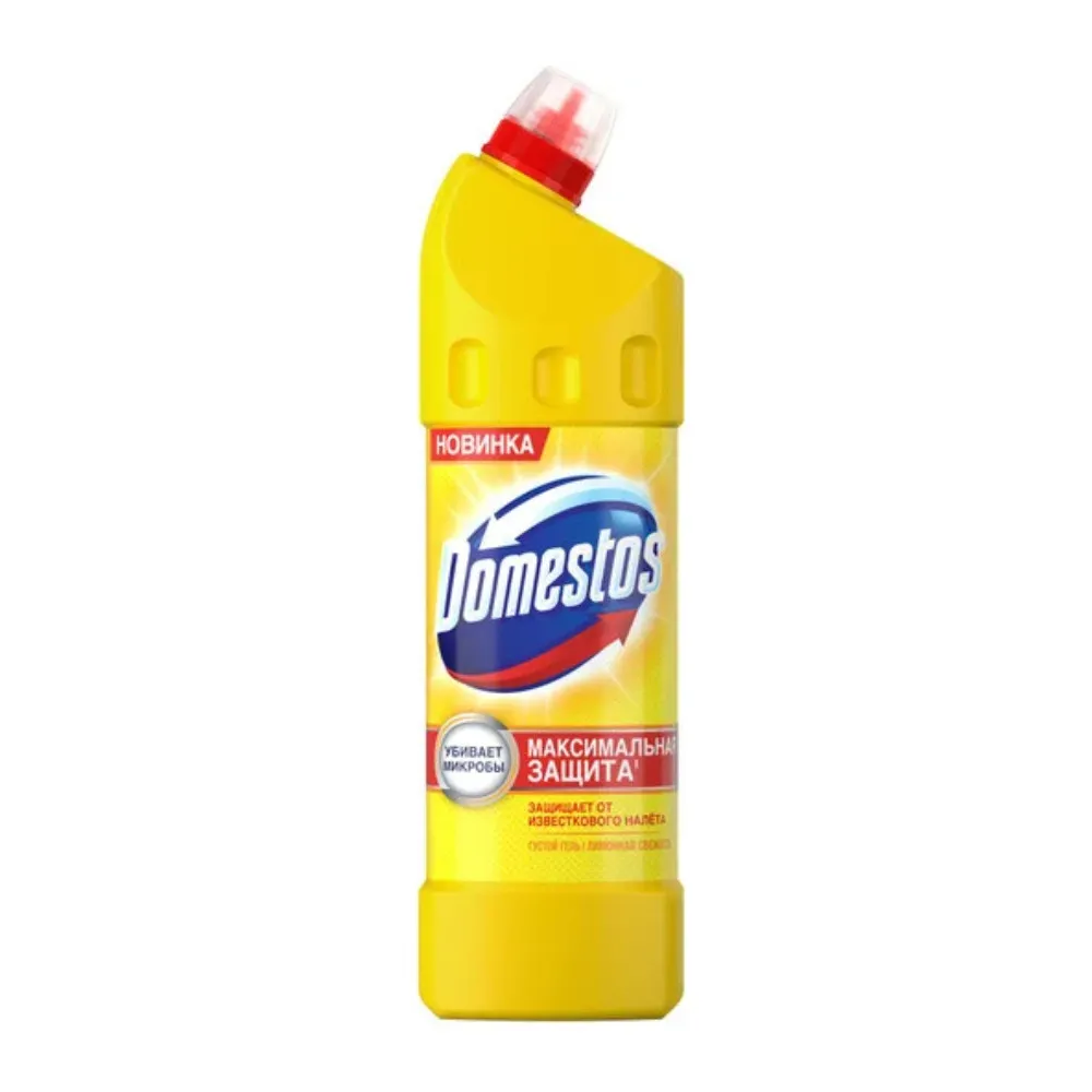 <p><strong>Чистящее средство для уборки Domestos «Лимонная свежесть», дезинфицирующий гель, 750 мл.</strong></p><p>Эффективный дезинфицирующий гель предназначен для глубокой очистки и гигиенической защиты поверхностей. Удаляет стойкие загрязнения, уничтожает бактерии и помогает поддерживать чистоту в зонах повышенных требований к гигиене.</p><p>Густая гелевая формула хорошо распределяется по поверхности, а свежий лимонный аромат делает уборку более комфортной. Подходит для регулярного использования в ванной комнате, санузле и других моющихся зонах.</p>
