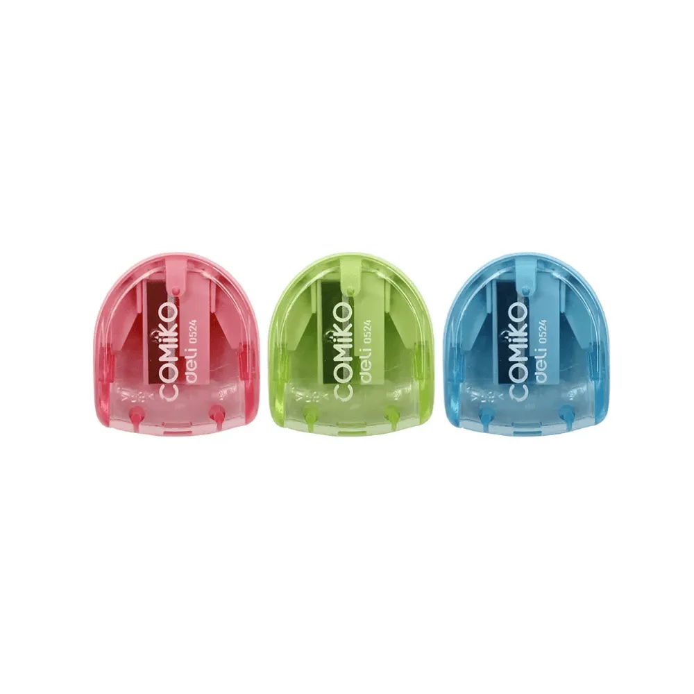 Точилка DELI "Comiko" 0524, пластиковая, 1 отверстие, с контейнером, ассорти