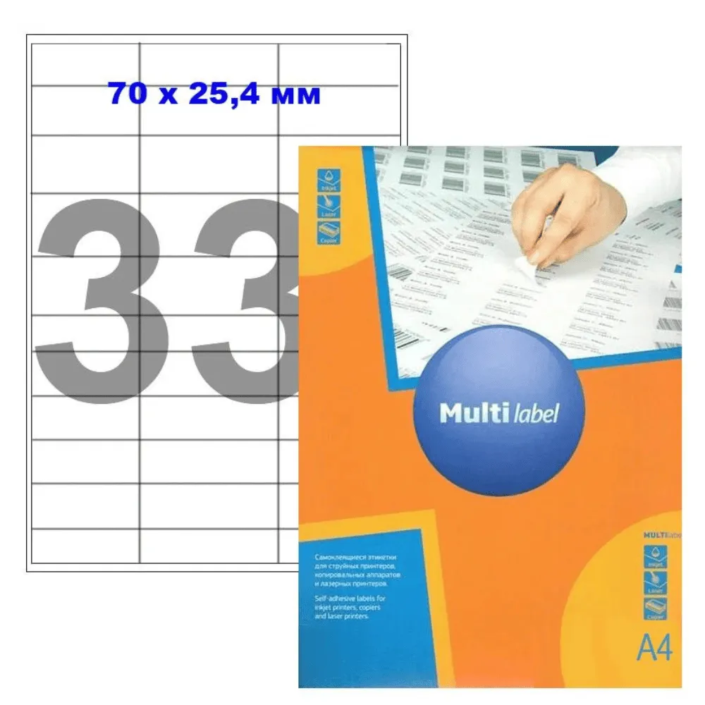 Этикетки самоклеящиеся Multilabel, А4, 70 х 25,4 мм., 33 шт/лист, 100 л.