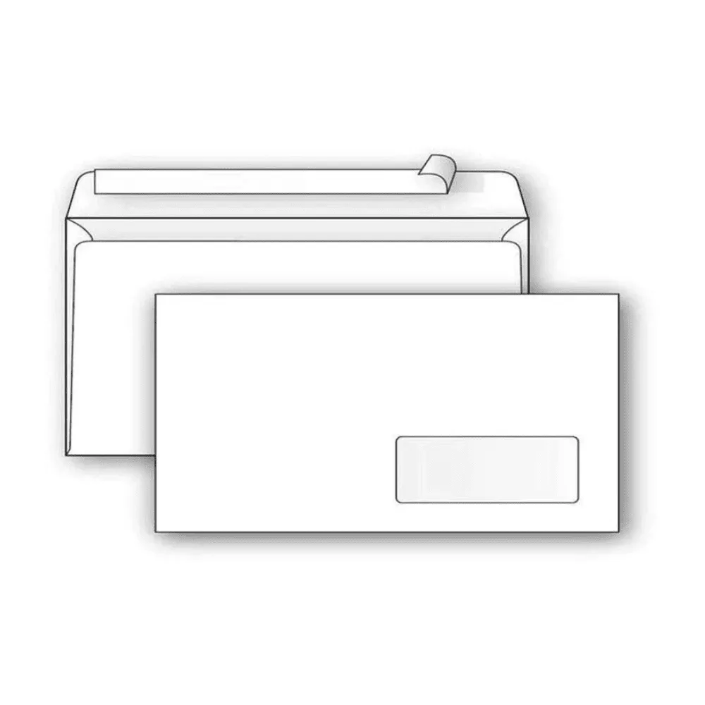 Конверт Е65 Ряжская печатная фабрика (110х220 мм) белый, удаляемая лента, правое окно 45х90 мм