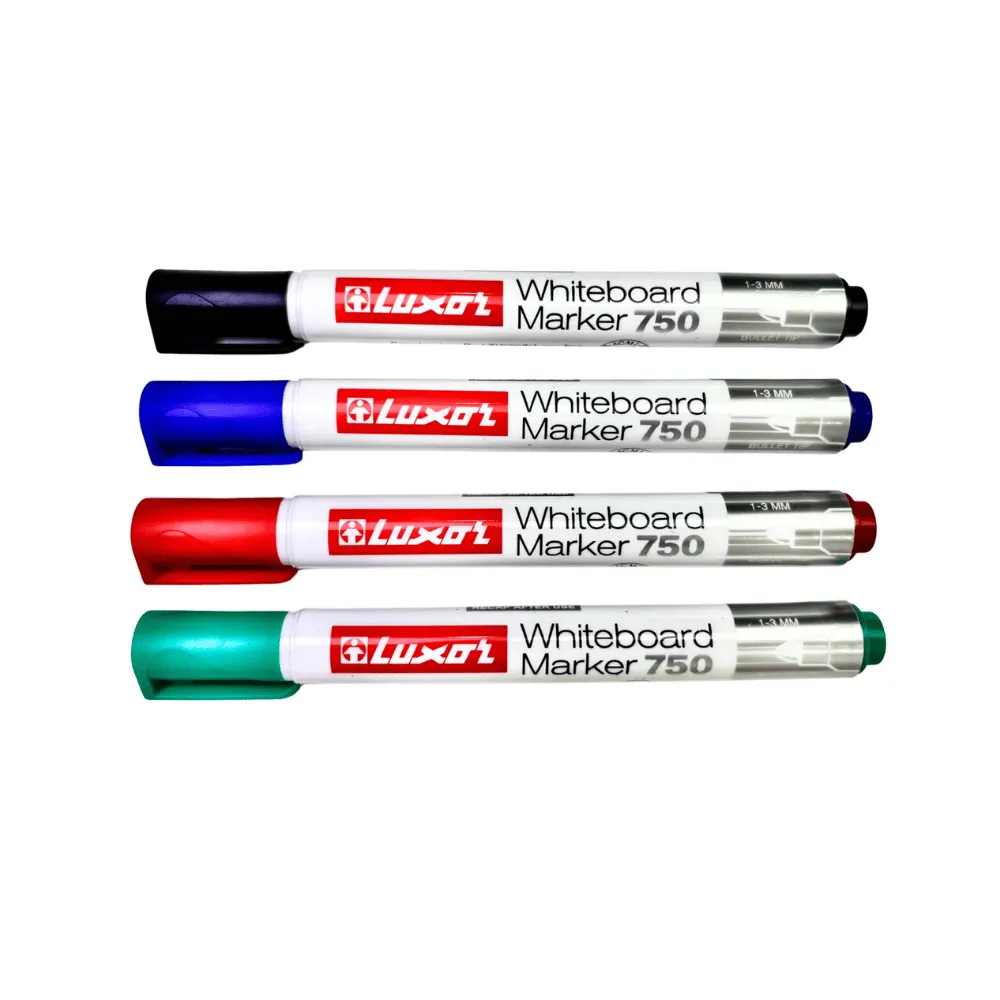 <p>Набор маркеров для доски Luxor 750 предназначен для письма на белых маркерных поверхностях и станет удобным инструментом для офиса, учебы и презентаций. Маркеры создают чёткие и яркие линии, которые хорошо видны даже на расстоянии и легко стираются сухой губкой или тканью без следов. Разноцветные чернила позволяют выделять ключевые моменты и структурировать информацию, делая записи более наглядными. Они быстро высыхают, не размазываются и сохраняют насыщенность на протяжении всего использования. Удобный корпус обеспечивает комфортное письмо, что делает набор практичным и универсальным решением для работы и учёбы.</p>