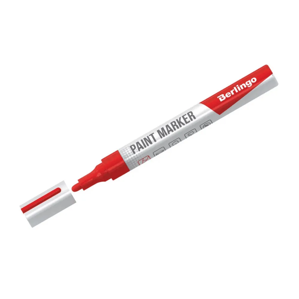 <p>Маркер-краска Berlingo предназначен для нанесения устойчивых и ярких надписей на различных поверхностях, включая стекло, металл, пластик, дерево и картон. Он создаёт плотные и насыщенные линии, которые сохраняют чёткий вид и не стираются со временем, что делает его удобным для оформления, маркировки и декоративных работ. Скошенный наконечник толщиной 2–4 мм позволяет варьировать стиль письма — от аккуратных надписей до более широких штрихов. Красящий состав ложится ровно, отличается стойкостью и хорошей укрывистостью, обеспечивая долговечный результат. Такой маркер станет практичным инструментом как для профессиональных задач, так и для творческих проектов.</p>