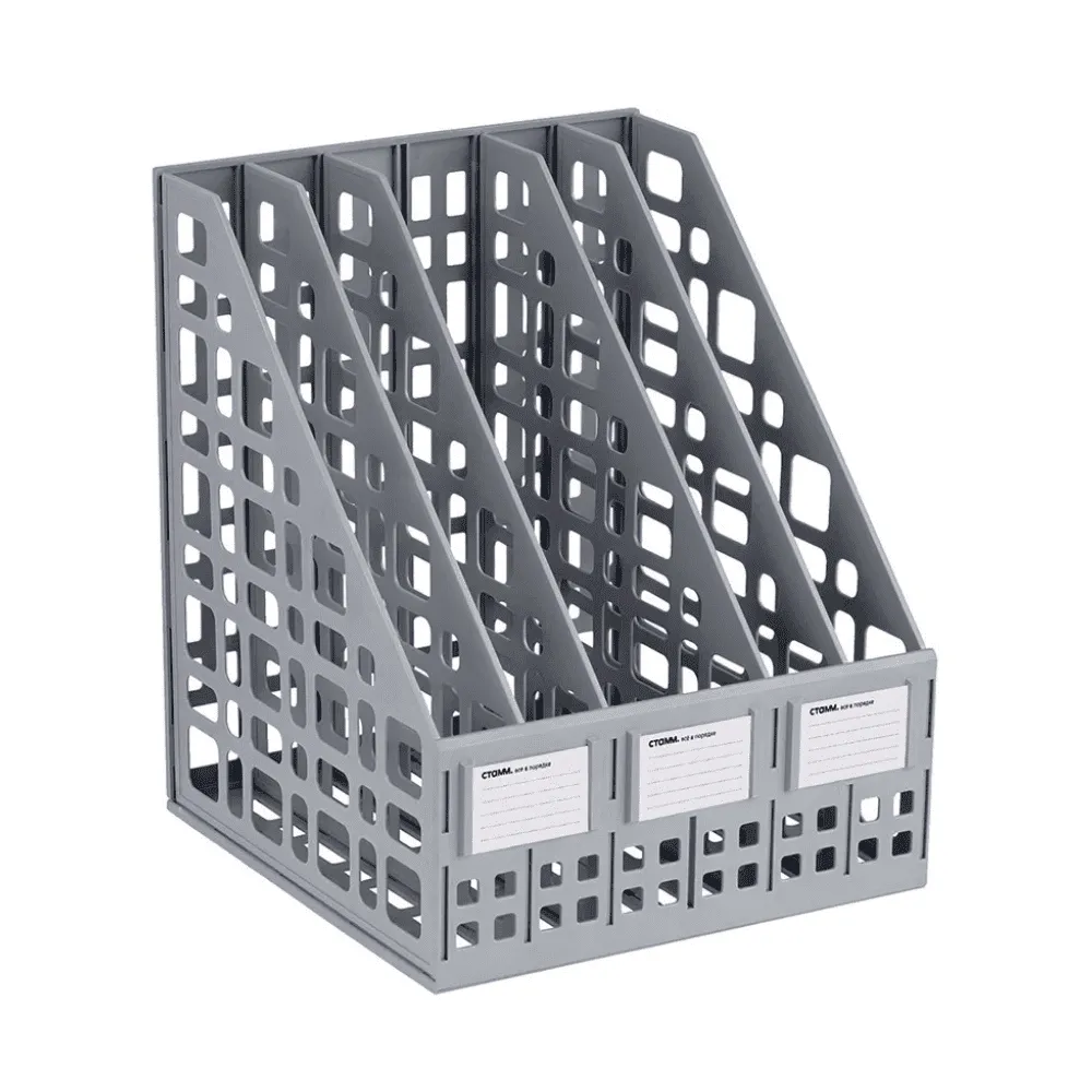 <p>Вертикальный лоток СТАММ с несколькими отделениями помогает удобно распределять документы формата А4, поддерживая порядок и систематизацию на рабочем месте. Каждое отделение позволяет разложить материалы по категориям: журналы, папки, каталоги или отчёты будут всегда под рукой и в аккуратном виде. Изделие выполнено из прочного пластика, устойчивого к ежедневной эксплуатации и сохраняющего форму при длительном использовании. Несколько секций обеспечивают хорошую вместимость и помогают эффективно организовать пространство на столе. Современный дизайн и универсальные цвета (чёрный или серый) делают лотки СТАММ практичным решением для офиса, учебы или домашнего использования. Они сочетают в себе надёжность, удобство и функциональность.</p>