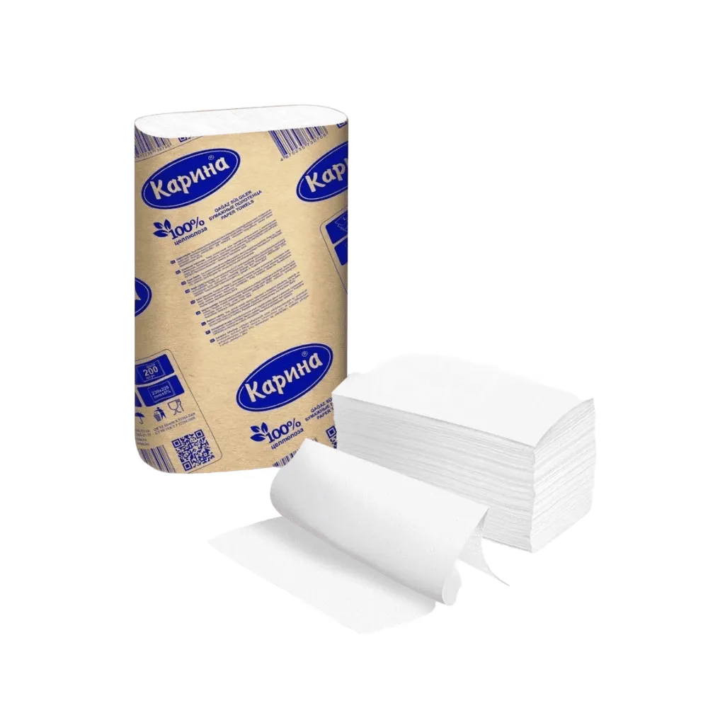 Полотенца бумажные Карина, 200 шт, 2-слойные, 21*23 см, Z-сложение, белые, 24 шт/кор