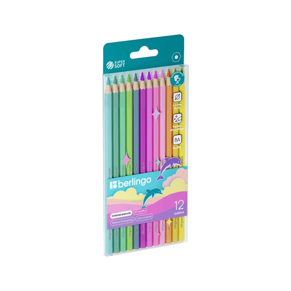 Карандаши цветные пастельные Berlingo "SuperSoft. Pastel", 12цв., заточен., европодвес
