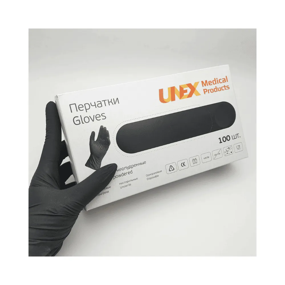 Черные перчатки виниловые UNEX 100 шт, L размер
