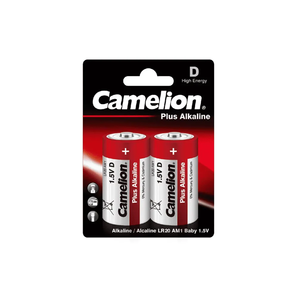<p>Батарейки CAMELION Plus Alkaline LR20-BP2 (D), 2 штуки в блистере — это надежный источник питания для устройств с высоким энергопотреблением, таких как фонарики, радиоприемники, игрушки и бытовая техника. Щелочная технология обеспечивает стабильное напряжение и долгий срок службы, позволяя устройствам работать эффективно и без перебоев. Удобная упаковка в блистере делает батарейки практичными для хранения и быстрого использования при необходимости. Высокое качество и проверенная надежность бренда Camelion гарантируют долговечность и безопасную эксплуатацию. CAMELION Plus Alkaline LR20-BP2 — это практичное и долговечное решение для питания электроники, обеспечивающее стабильность, комфорт и уверенность в работе устройств.</p>
