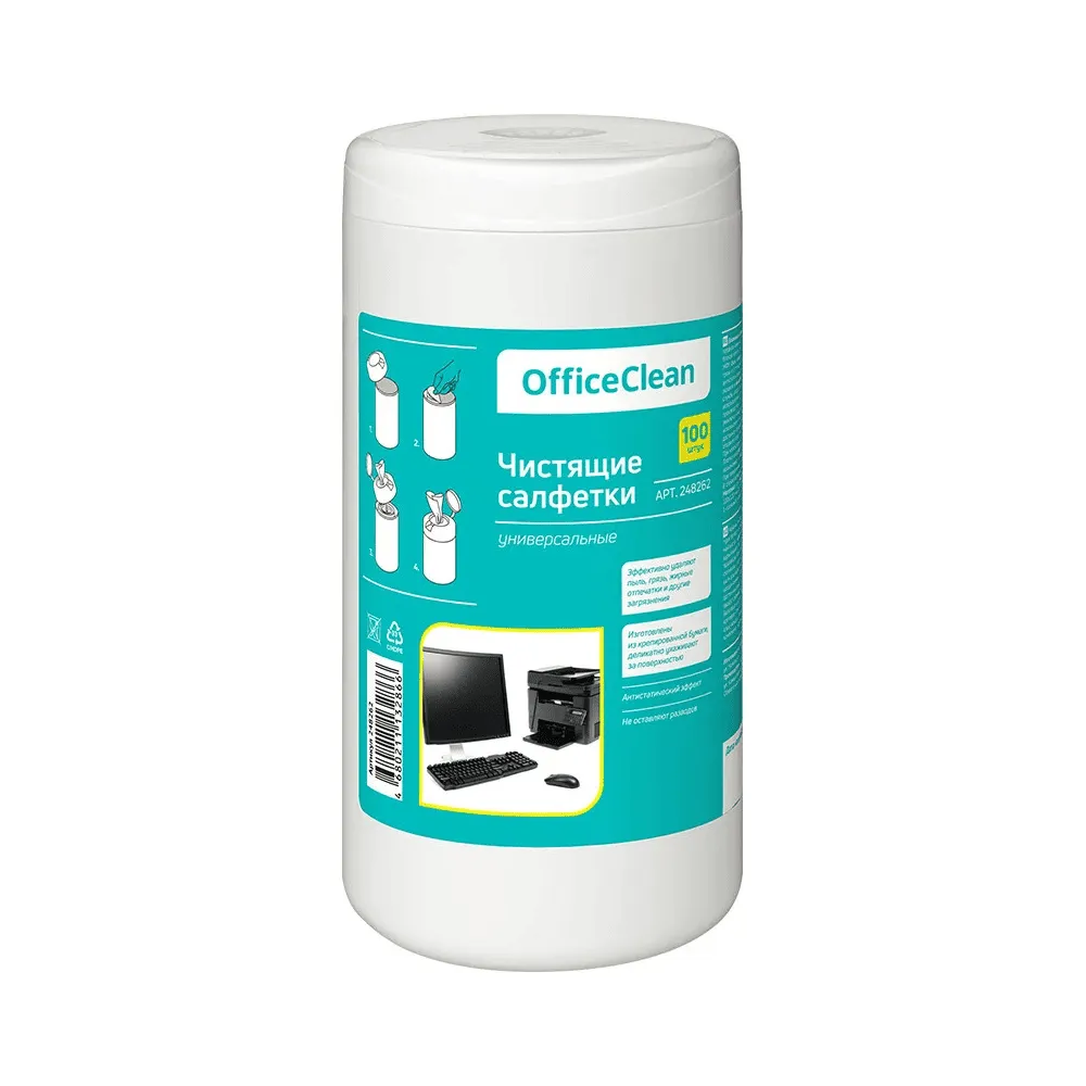 Салфетки чистящие влажные OfficeClean, универсальные, 100 шт в тубе