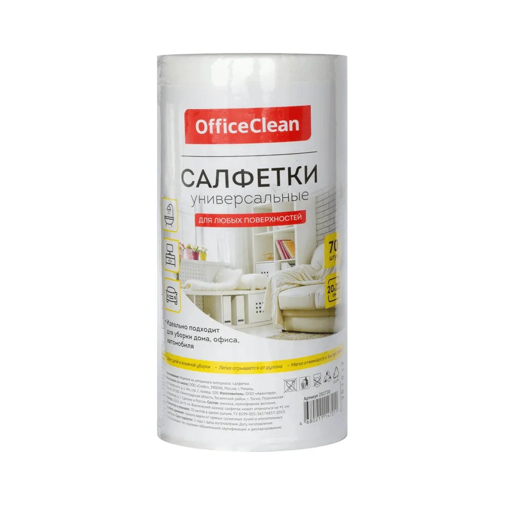 Салфетки из вискозы OfficeClean, 20 х 22 см, 70 штук в рулоне