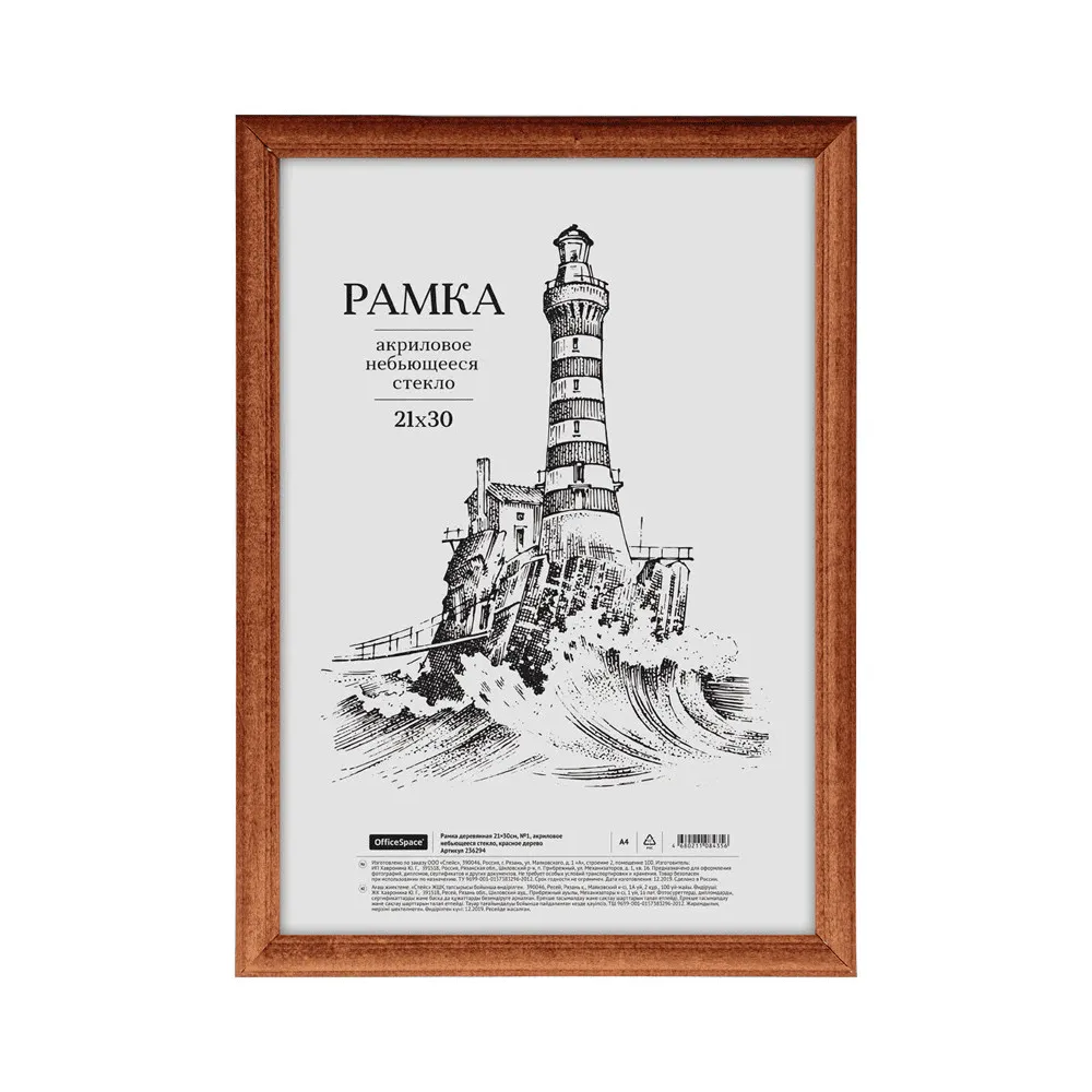 Рамка МДФ, OfficeSpace, №1, красное дерево, пластик, 21х30 см