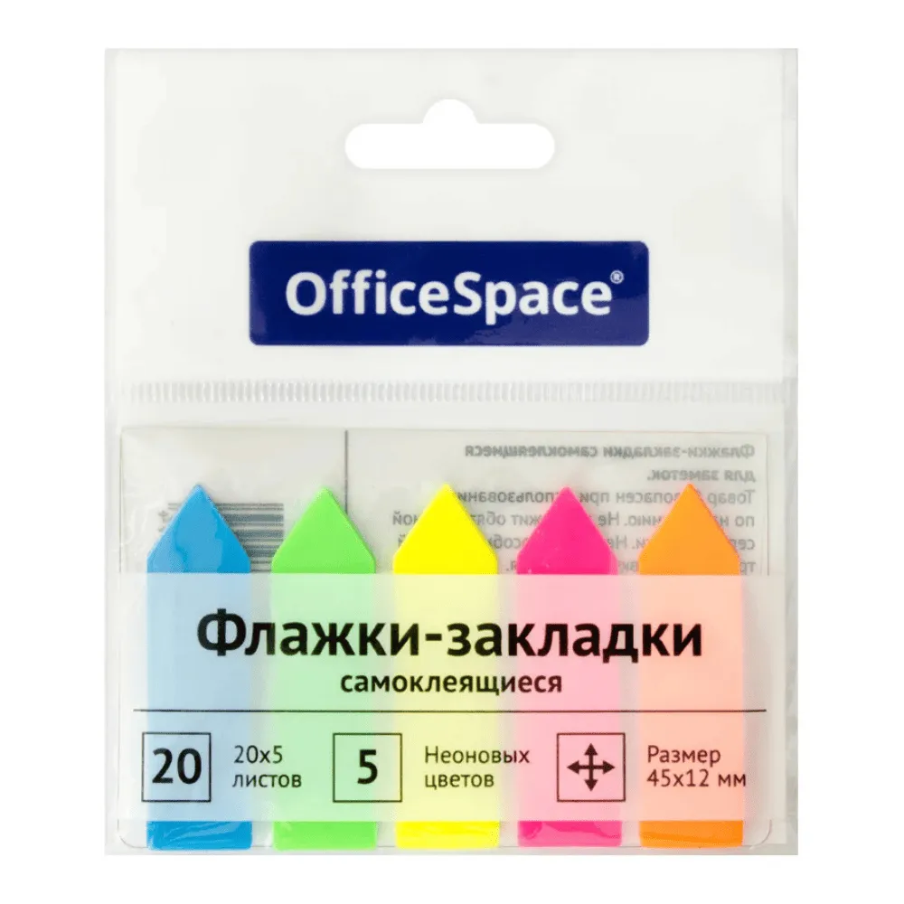 Закладки клейкие OfficeSpace "Стрелка" 12 х 45 мм, пластиковые, 5 цв х 20 листов