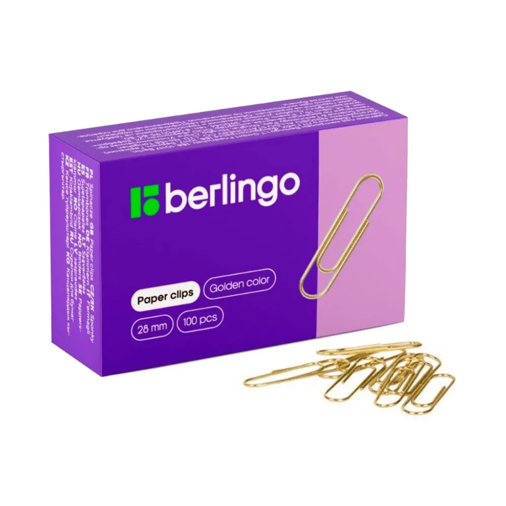 Скрепки BERLINGO 28 мм, золотистые, 100 шт/упак